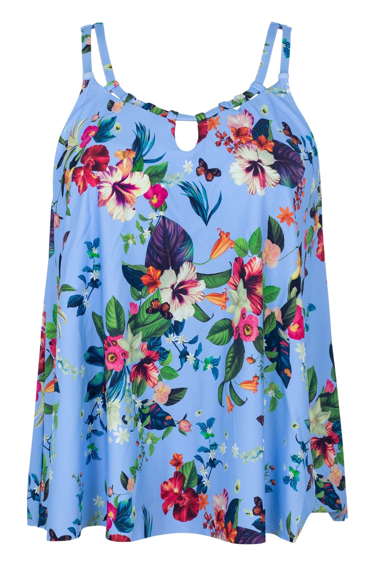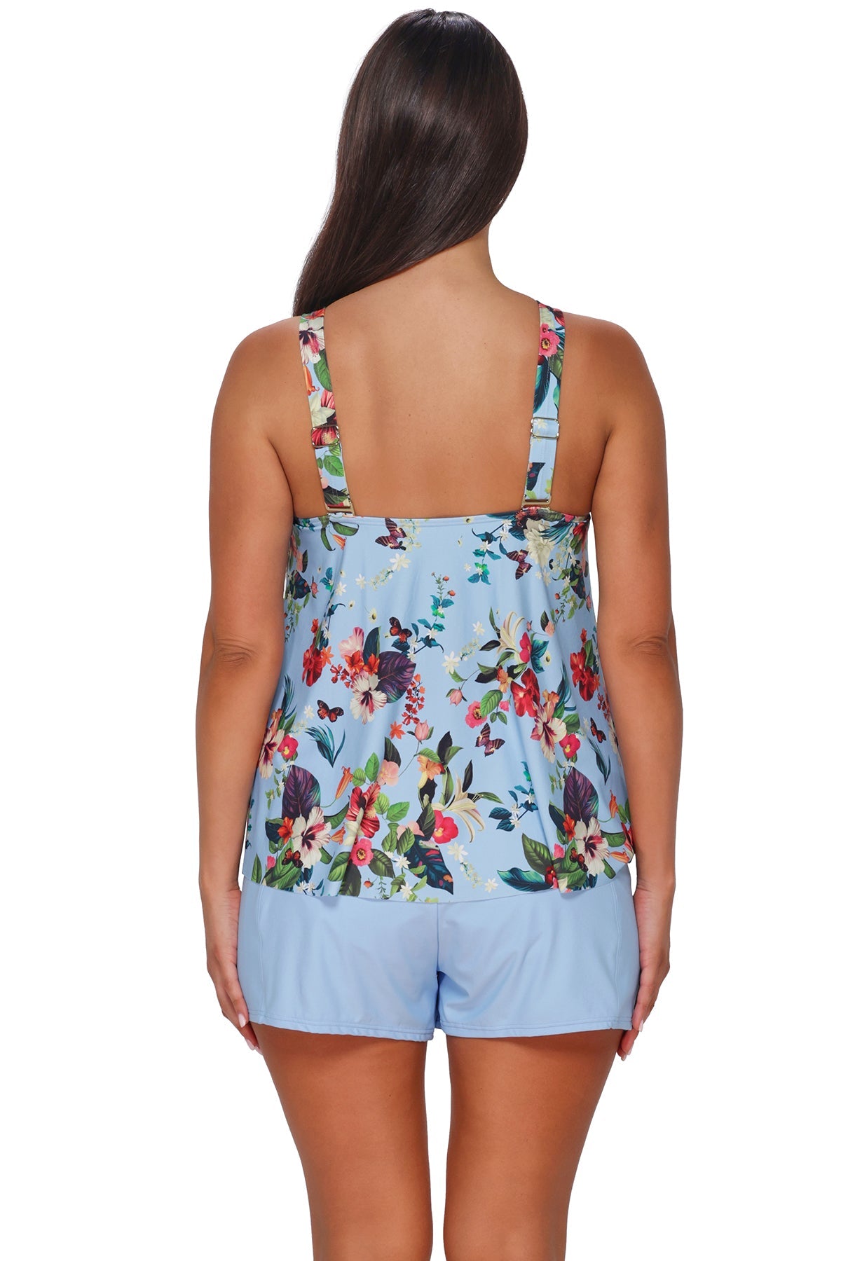 The Sadie Tankini has a flowy A-line silhouette and a high neckline. With soft cups and adjustable straps that can be converted to a cross back, this swim tank is ideal for anyone seeking comfort and style.