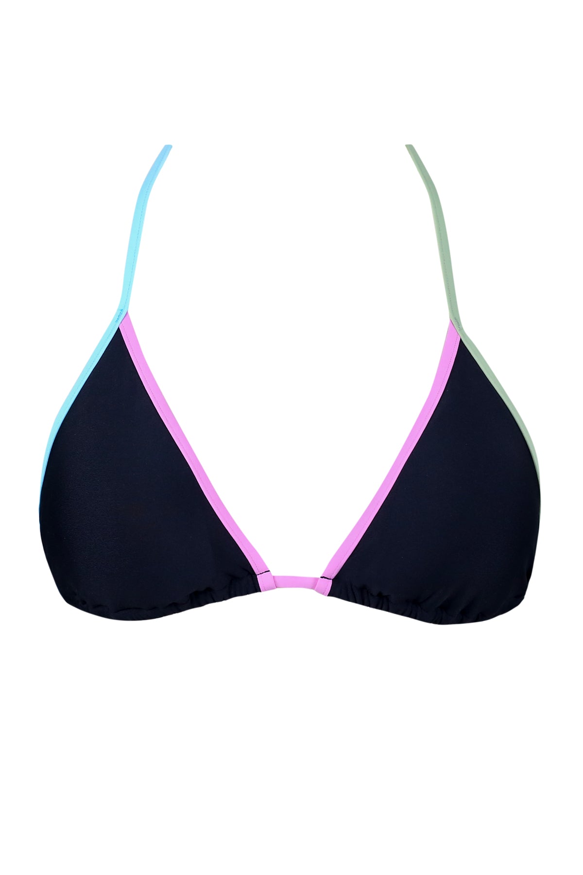 The Trisha Triangle gives a fresh spin to a classic bikini top. She features removable cups for custom shape and support, while her contrast binding delivers a playful pop. Soft, adjustable ties hold her in place, keeping you secure from surf to sunset.