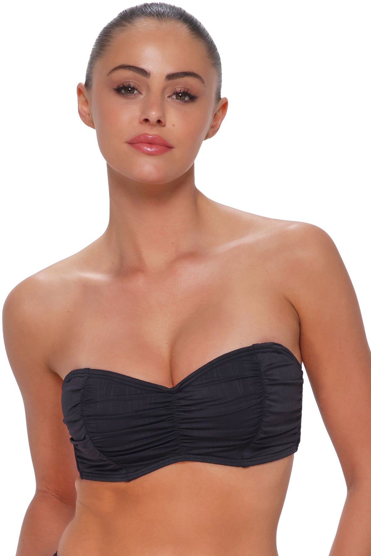 The Loretta Bandeau blends form and function. Flattering shirring along the seams sculpts your curves. Underwire gives confident support. Removable straps transform the look to a stunning-yet-secure bandeau in seconds. It's modern, minimal, and undeniably chic.