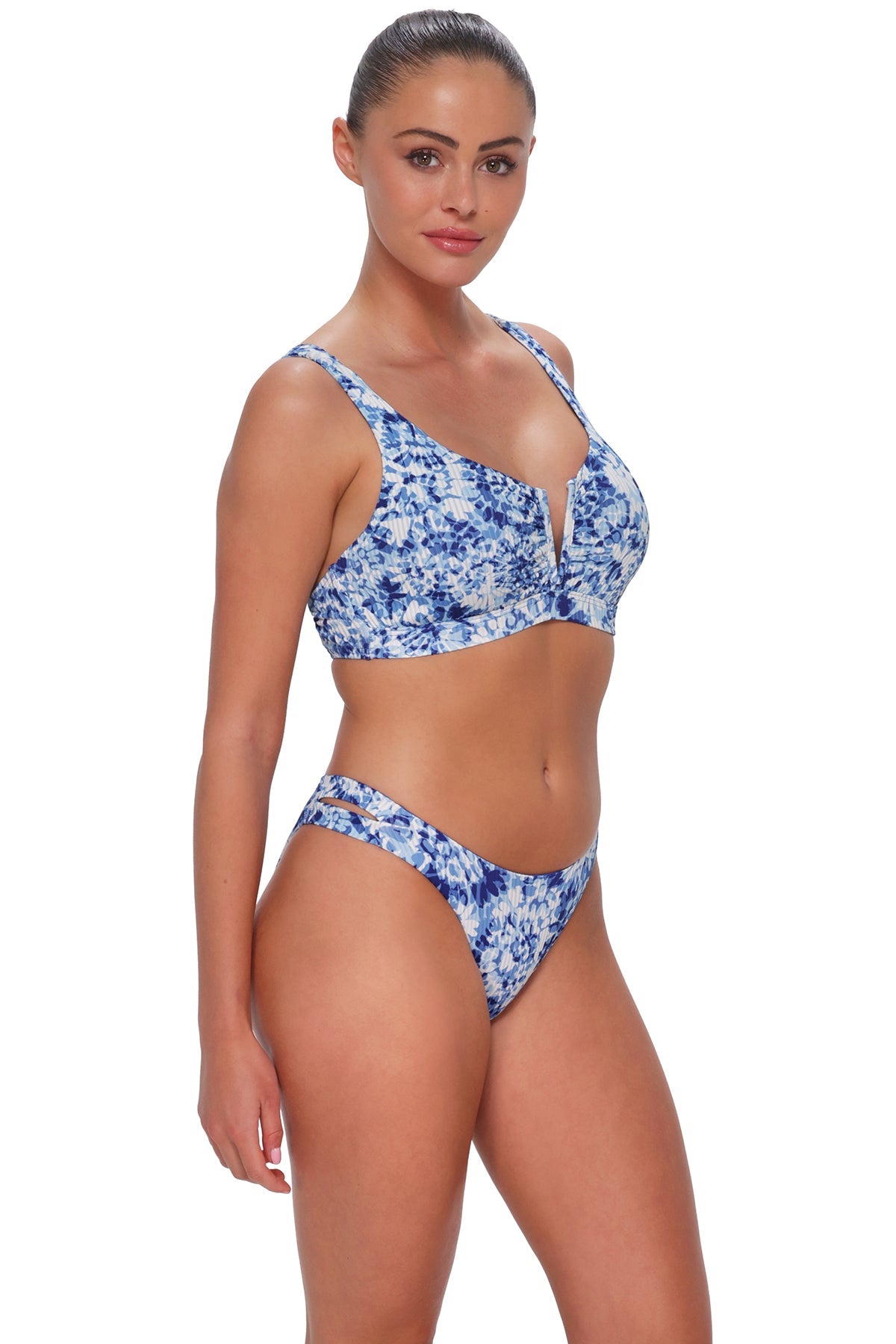 Meet the Dora Double Tab: a streamlined bottom with soft side tabs that converts from a classic hipster to a sleek high leg with a scoop front. Slip it on and step out with effortless confidence.